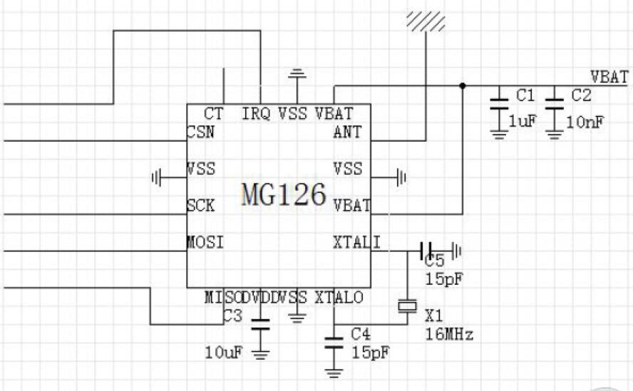 射頻芯片是低功耗、低成本的BLE收發(fā)器,內(nèi)部集成了發(fā)射機、接收機、GFSK調(diào)制解調(diào)器和BLE基帶處理。MG126采用QFN3x3封裝,搭配Cortex-M0 MCU和少數(shù)外圍被動器件,可以實現(xiàn)BLE遙控、藍牙鍵盤等數(shù)據(jù)傳輸應(yīng)用。電源電壓1.9~3.6,可以采用一個紐扣電池(3.0v)供電,具有3uA待機電流,20mA@0dBm持續(xù)發(fā)射,18mA持續(xù)接收。