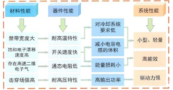 相比主流的第一代半導(dǎo)體——硅材料,碳化硅的禁帶寬度是硅的3倍;導(dǎo)熱率為硅的4-5倍;擊穿電壓為硅的8-10倍;電子飽和漂移速率為硅的2-3倍。