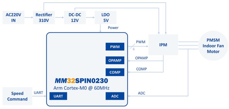 低成本32位單片機MM32SPIN0230空調(diào)內(nèi)風(fēng)機方案