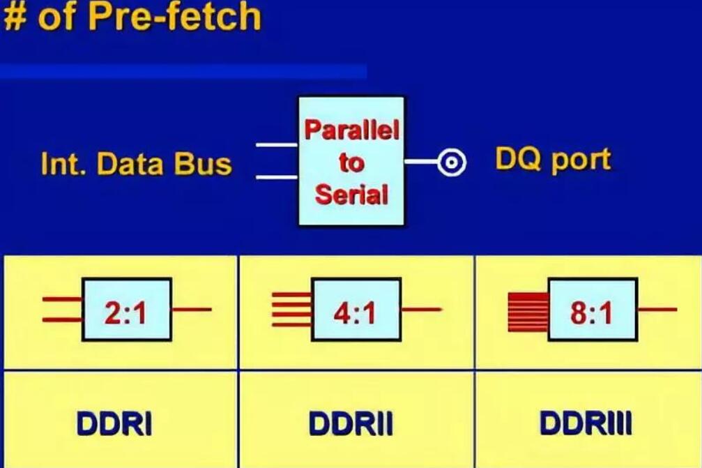 SDR SDRAM的兩倍,而且這樣做還不會增加功耗,至于定址與控制信號與SDR SDRAM相同,僅在上升沿傳輸,這是對當時內(nèi)存控制器的兼容性與性能做的折中。