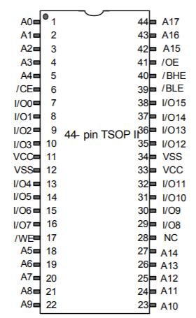 數(shù)據(jù)讀取是通過將芯片使能(CE)和輸出使能(OE)輸入置為低電平并在地址線上提供所需地址來執(zhí)行的。讀取數(shù)據(jù)可通過I/O線(I/O0到I/O15)訪問。字節(jié)訪問可以通過置位所需的字節(jié)使能信號(BHE或BLE)來執(zhí)行,以從指定地址位置讀取數(shù)據(jù)的高字節(jié)或低字節(jié)。