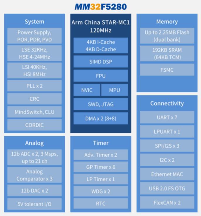 MM32F5280升級(jí)版的架構(gòu)圖如下: