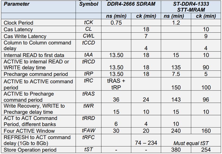 該表顯示了DDR4和ST-DDR4的關(guān)鍵時序參數(shù)