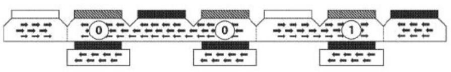 為了寫入單個位,電流通過存儲線,并且多鐵性元件和自由層的相互作用確定層之間的反平行極性為“ 1”(高電阻),層之間的平行極性為“ 0” (低電阻)。然后,通過減小存儲線和多鐵性元件之間的交換偏壓來更改存儲域的磁化強(qiáng)度(請參見上圖)。存儲器域是可獨(dú)立寫的,只需要一個電流輸入即可存儲數(shù)據(jù)。這大大降低了能耗和寫入周期所需的時間,從而提高了成本和性能效率。