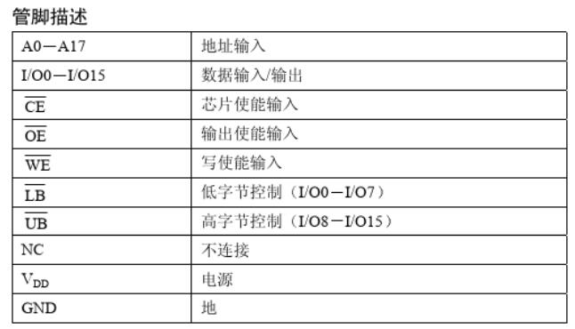 芯片使能輸入CE和輸出使能輸入OE可方便實(shí)現(xiàn)存儲(chǔ)器的擴(kuò)展。低電平有效的寫(xiě)使能( WE )控制著存儲(chǔ)器的寫(xiě)和讀操作。高字節(jié)(UB)和低字節(jié)(LB )控制信號(hào)控制著對(duì)數(shù)據(jù)字節(jié)的訪問(wèn)。