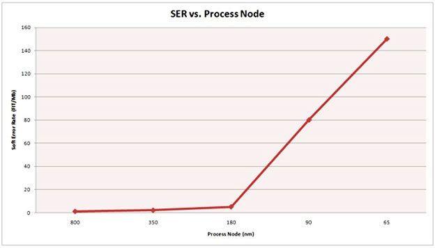 更易出現(xiàn)軟錯(cuò)誤:工藝節(jié)點(diǎn)從130nm縮小到22nm后,軟錯(cuò)誤率預(yù)計(jì)將增加7倍。