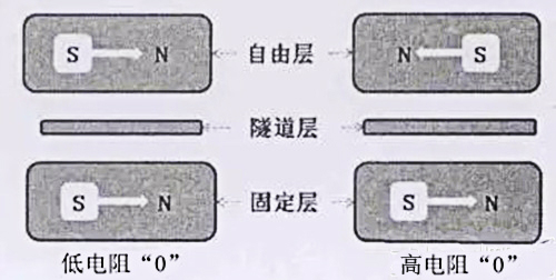 MRAM是利用材料的磁場隨磁場的作用而改變的原理所制成。利用磁存儲單元磁性隧道結(jié)(MTJ)的隧穿磁電阻效應來進行存儲。